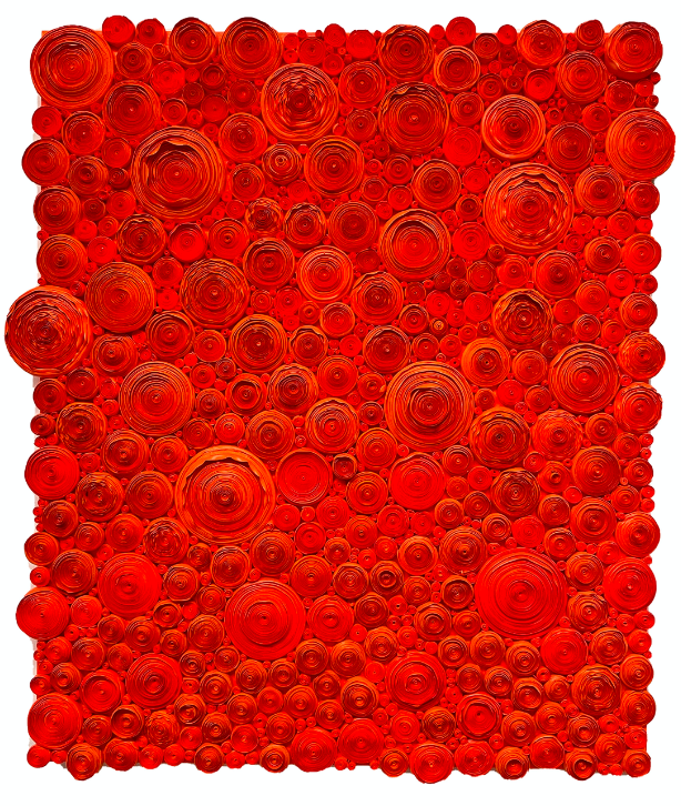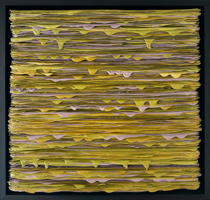 Geleneksel resmin yok oluşu etrafındaki kültürel tartışmadan yola çıkan Delgado, tuvalin sınırlarının dışına çıkmayı amaçlayan bir isyanla beraber resim kavramını ve kullandığı malzemeyi olabildiğince genişletmeyi hedeflemektedir. Resmi sadece bir teknik olmaktan çıkartıp, konu olarak ele alan bu çalışmalar izleyicilerde merak uyandırmaktadır. Sanatçı, akriliği katmanlar, damlalar, şeritler veya tabakalar halinde kuruttuktan sonra onları kesip farklı yüzeyler üzerinde birbirine yapıştırarak, çalışmalarına boyut katmaktadır. Bu heykelsi tavır, Delgado’nun resmi sorgulama sürecinin bir yansımasıdır.