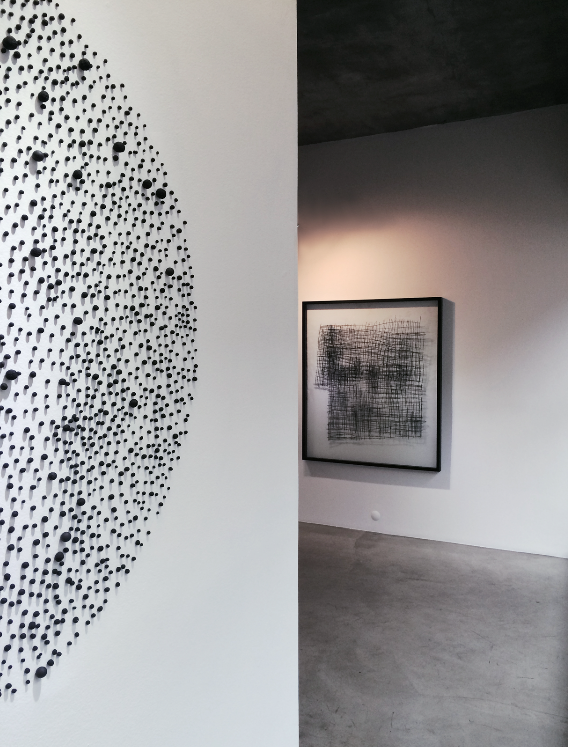 Sanatçı bir önceki sergisi “Düğüm” de olduğu gibi mekansal bir temel olan kağıdı, hem yüzey hem de nokta, çizgi, boşluk gibi sanatın biçimsel figürlerinin kendisi olarak, ‘tek’ bir öğenin onlarca farklı potansiyeli şeklinde örgütlüyor. İki boyutlu yanılsamayı büyük oranda dışlayan çalışmalar, sadece kağıdın kullanılmasından ötürü, bükme ve yuvarlama gibi malzemeye yönelik olarak gerçekleştirilen müdahaleleri, tipik bir figür-arka plan ayrımından öte, uzamsal vurgunun ön planda olduğu bir olgu bağlamının içinde kuruyor.