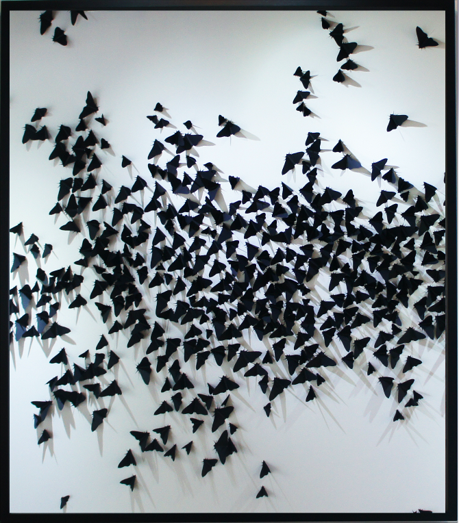 Mursaloğlu, evren ve yaşam hakkındaki kişisel algısını, minimal formlara indirgereyek, çeşitli duygu durumlarının ve kavramların, karmaşık yapılar olarak formel bir yorumunu sunuyor. Sergideki belirgin tek figür olarak karşımıza çıkan ‘kelebek’, bu yönüyle ele alındığında, tek bir kelebeğin göndergesel boyutunun ötesinde, sayı ve büyüklük gibi niceliksel özellikleriyle, toplumsal bilinçaltına, biyo-politikaya, olaylar ve olgular karşısındaki insan örgütlemelerine dair şiirsel bir haritalama biçiminde varoluyor.