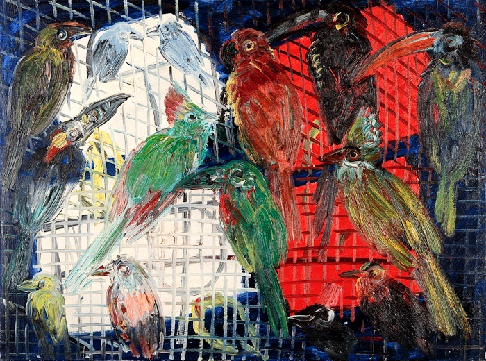Born in 1951 in Kittery, Maine, the artist lived in Mexico and Nicaragua during his college years and was influenced by their cultures. Slonem moved to New York in 1972 and graduated from Tulane University in New Orleans in 1973. Represented in New York by Marlborough Gallery, the artist has, since 1973, lived and worked in his legendary New York loft together with more than 70 birds he keeps.