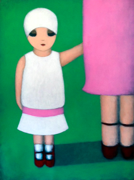 Drawing from pure imagination and emotion, rather than life observation or photographs, Wilson’s perspective, woven with personal reflections, takes the viewer back to their childhood memories, where things felt innocent and safe. She describes, “I am interested in the idea that for everyone there was always a time, usually a long ago time, in which things felt safe and good.” The artist finds inspiration from works of the early Italian Renaissance by masters like Fra Angelico, “where strong, simple forms told great stories.”
