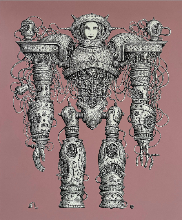 Sanatçının formları, ilk bakışta mekanik parçaların birleşiminden oluşmuş gibi görünse de, salt endüstriyel bir temsil değildir. Figürler endüstriyel temsilin ötesine geçerek, makinenin insana eşlik eden duygusal ve varoluşsal katmanlarını görünür kılar. Her bir çizim, parça parça bir araya gelmiş bir modüler bilincin temsilidir. Bu noktada, makine yalnızca bir araç değil; insan deneyiminin uzantısı ve belleğin farklı biçimlerde yeniden üretildiği bir alan hâline gelir.