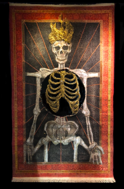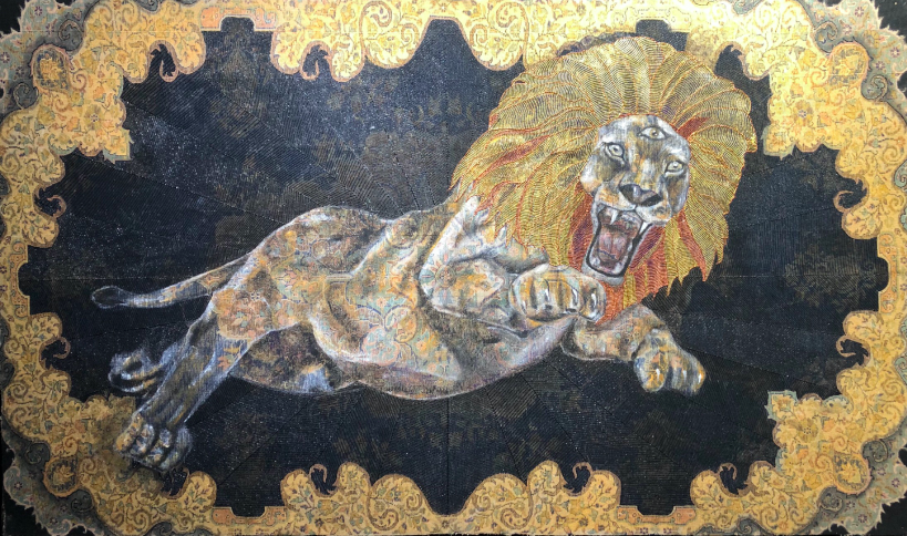 Sanatçı, pek çok farklı tekniğe başvurarak ürettiği çalışmalarında, çoğunlukla insan beyninin sağ ve sol lobunun arasındaki ilişkiye, işleyiş biçimine ve baskın olarak kullanılan tarafa göre sosyal hayatı ne ölçüde etkilediğine odaklanıyor. Bunun yanı sıra kültürel, sosyal, ekonomik ve benzeri dış faktörlerin insan psikolojisi üzerindeki tesirlerini araştıran Gazioğlu, izleyicinin birlikte görmeye alışık olmadığı malzemeleri biraraya getirdiği üretimleri üzerinden zıt dünyaların çatışmasını sorguluyor. Tuval gibi kullandığı eski halıları, kimi zaman pirinç, bakır ve bronz tellerle örüyor, kimi zamansa nakış işler gibi akrilik boya ile beziyor. Sergideki çalışmalarında yoğunlukla görülen aynaları ise korkularla yüzleşmenin metaforu olarak kullanıyor. Bilinç – bilinçaltı, fiziksel – ruhani gibi konuları araştıran sanatçı, hem bu sırlı cam aracılığıyla görünenin ötesinde neler olabileceğini düşündürüyor hem de kendi yansımasıyla başbaşa kalan izleyiciyi korkularıyla yüzleşmeye yönlendiriyor.