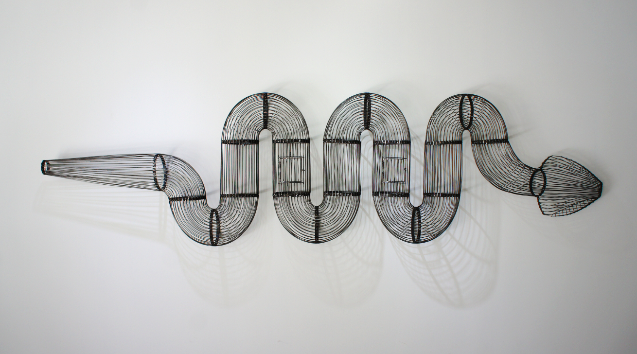 Kemal Tufan yeni sergisi ‘instru-mental II’de geçtiğimiz yıllarda gerçekleştirdiği kafes formundaki çalışmalarını yeni betimlemelerle derinleştiriyor. İçerisinde kuşların yer aldığı dolmakalem ve çekiçbaşlı köpekbalığı şeklindeki metal heykellerle başlayan seri, bu sergide daha minimal formlara doğru biçimleniyor.