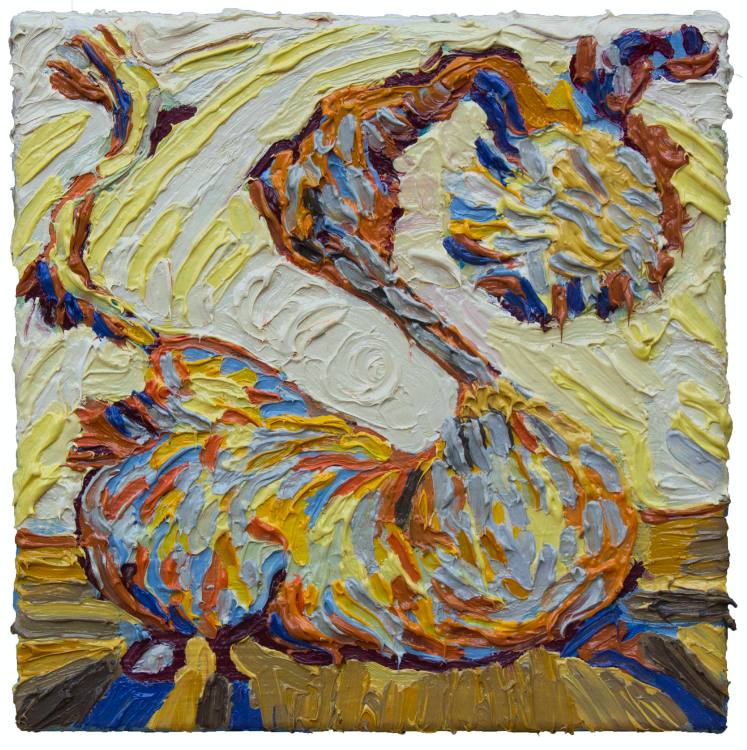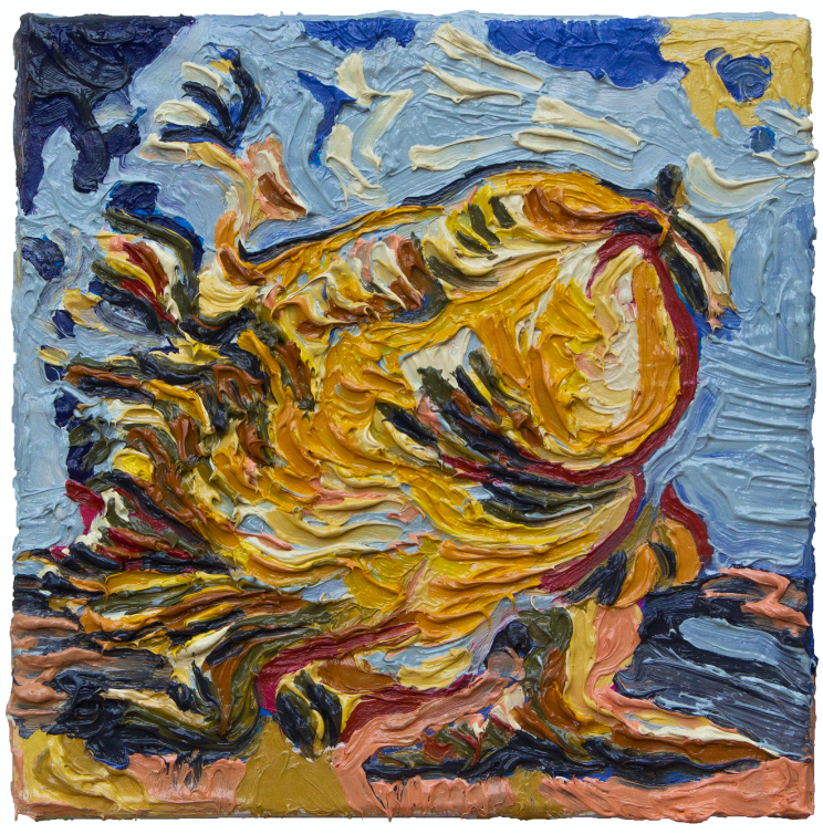 Leman Akpınar (1991) yapıtlarında, insan olmanın getirdiği kompleks doğa ile toplumun bireyler üzerindeki yansımalarını inceliyor. Ağırlıklı olarak yağlı boya kullanan sanatçı, atölye pratiğine bir dönüştürme laboratuvarı olarak bakıyor. Bunun sonucu olarak pratiğine (boya tüpleri gibi) farklı malzemeler entegre ediyor. 2013’te Mimar Sinan Güzel Sanatlar Üniversi- tesi Resim Bölümü’nden ayrılarak New York’a yerleşmiş ve 2016’da School of Visual Arts Güzel Sanatlar Bölümü’nden mezun olmuştur. 2017’den beri yaşamına ve sanat hayatına İstanbul’da devam etmektedir.
