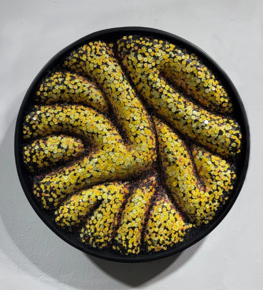 Sergi, arı toplumunun form ve davranışlarının insanın üretme, yeniden konumlanma ve dönüşüm hâlleriyle nasıl kesiştiğini görünür kılar. Yüzeyi kaplayan daireler, iğneler ve petek benzeri örgüler; arıların kolektif yapısının, sanatçının üretim pratiğinde yeniden somutlaşmış hâlidir.